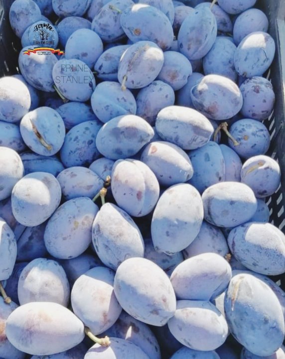 Prunele Stanley este de mărime mijlocie, elipsoidale cu cele două jumătăti asimetrice, de culoare violacee aproape neagră, cu gust mediocru, dulceag, slab aromat, cu sâmbure mare si neaderent.